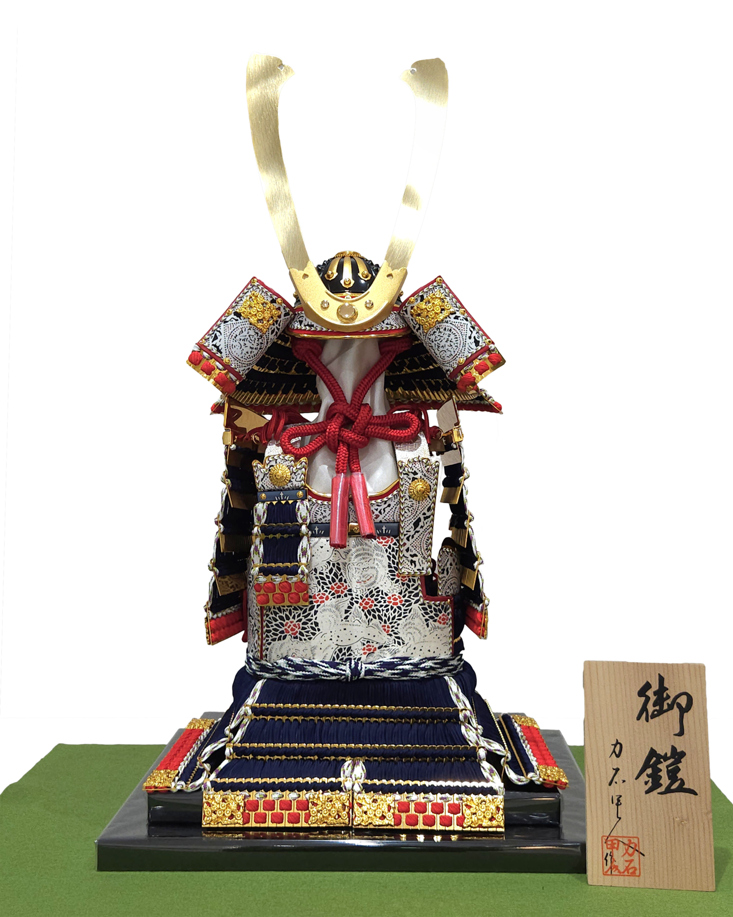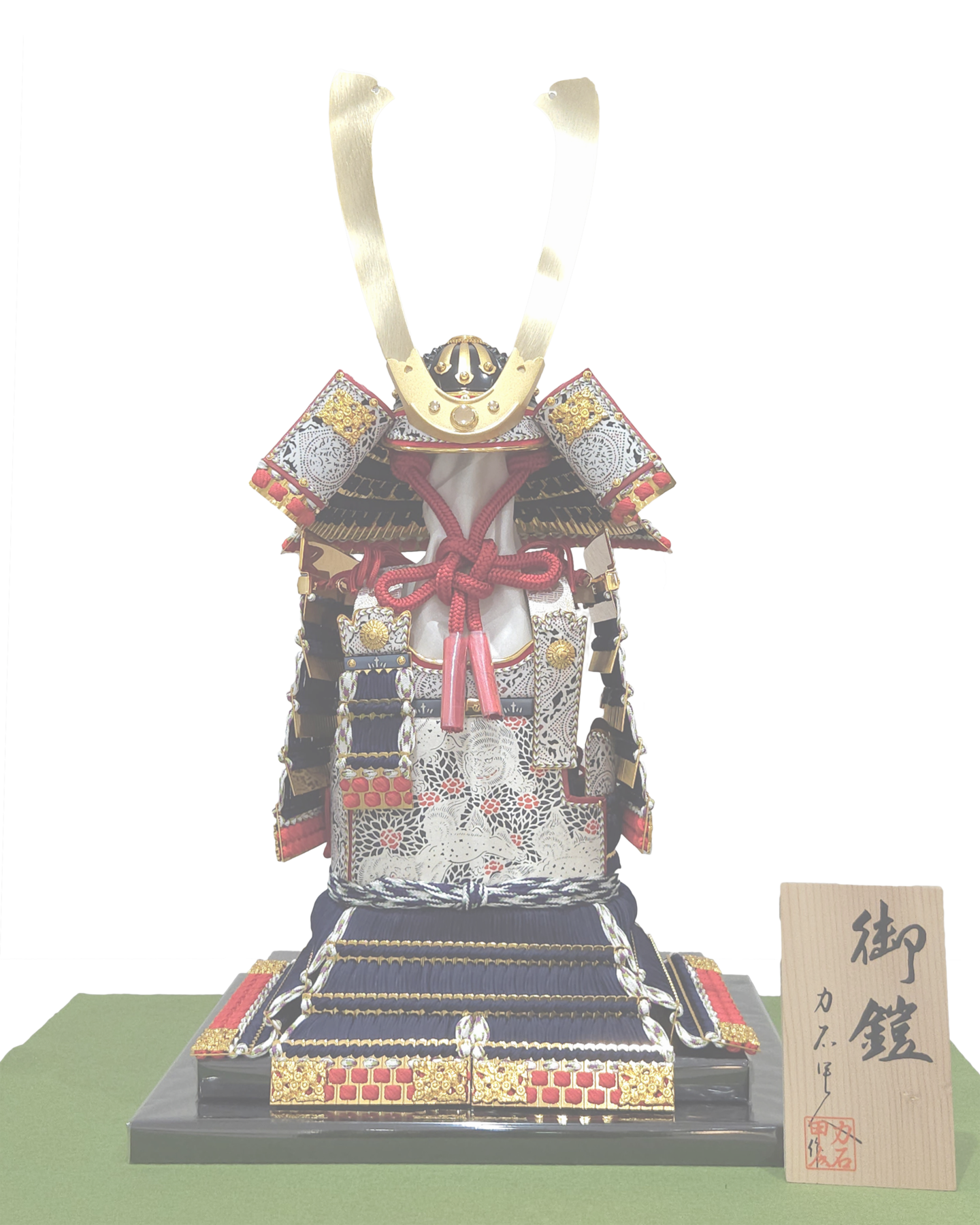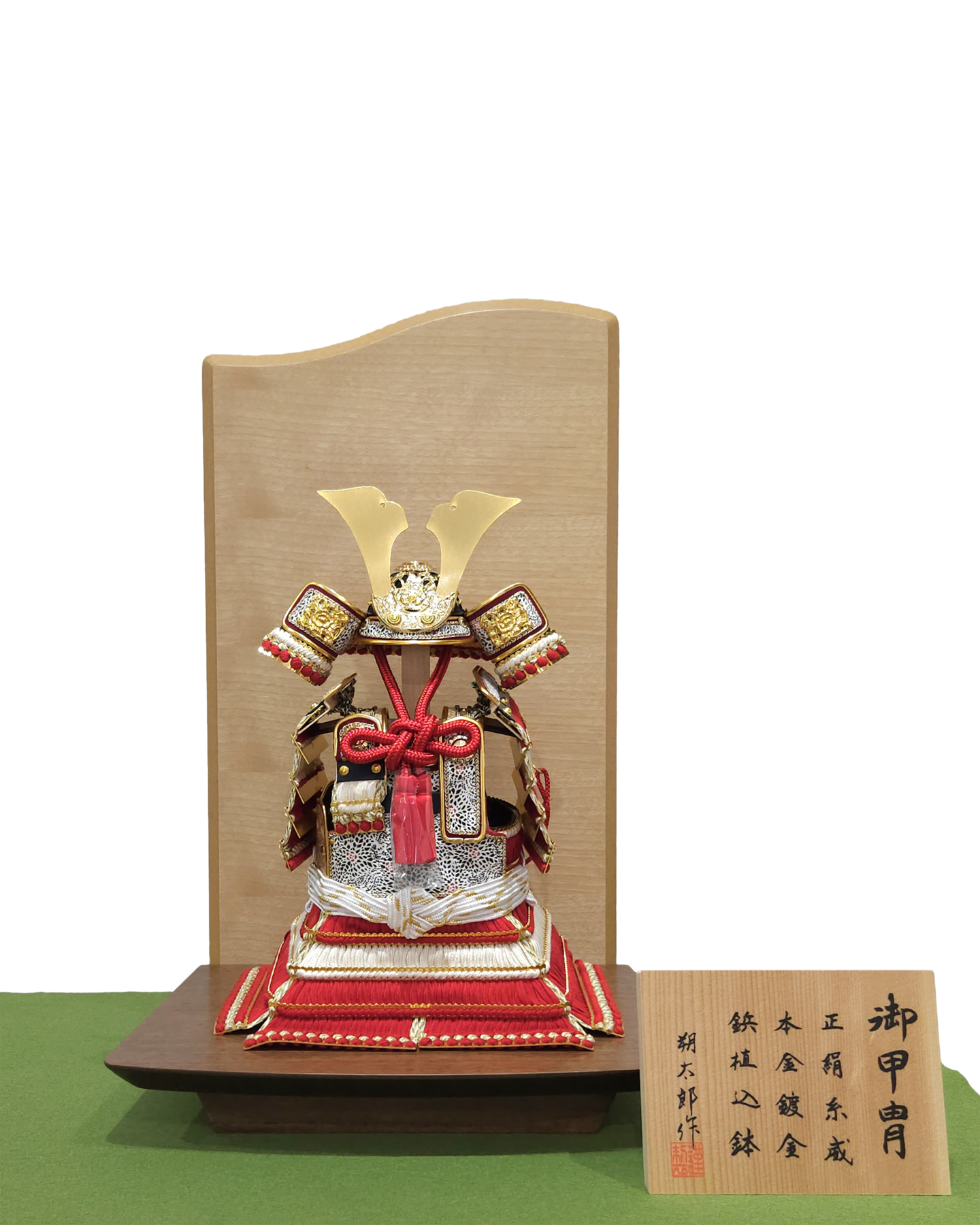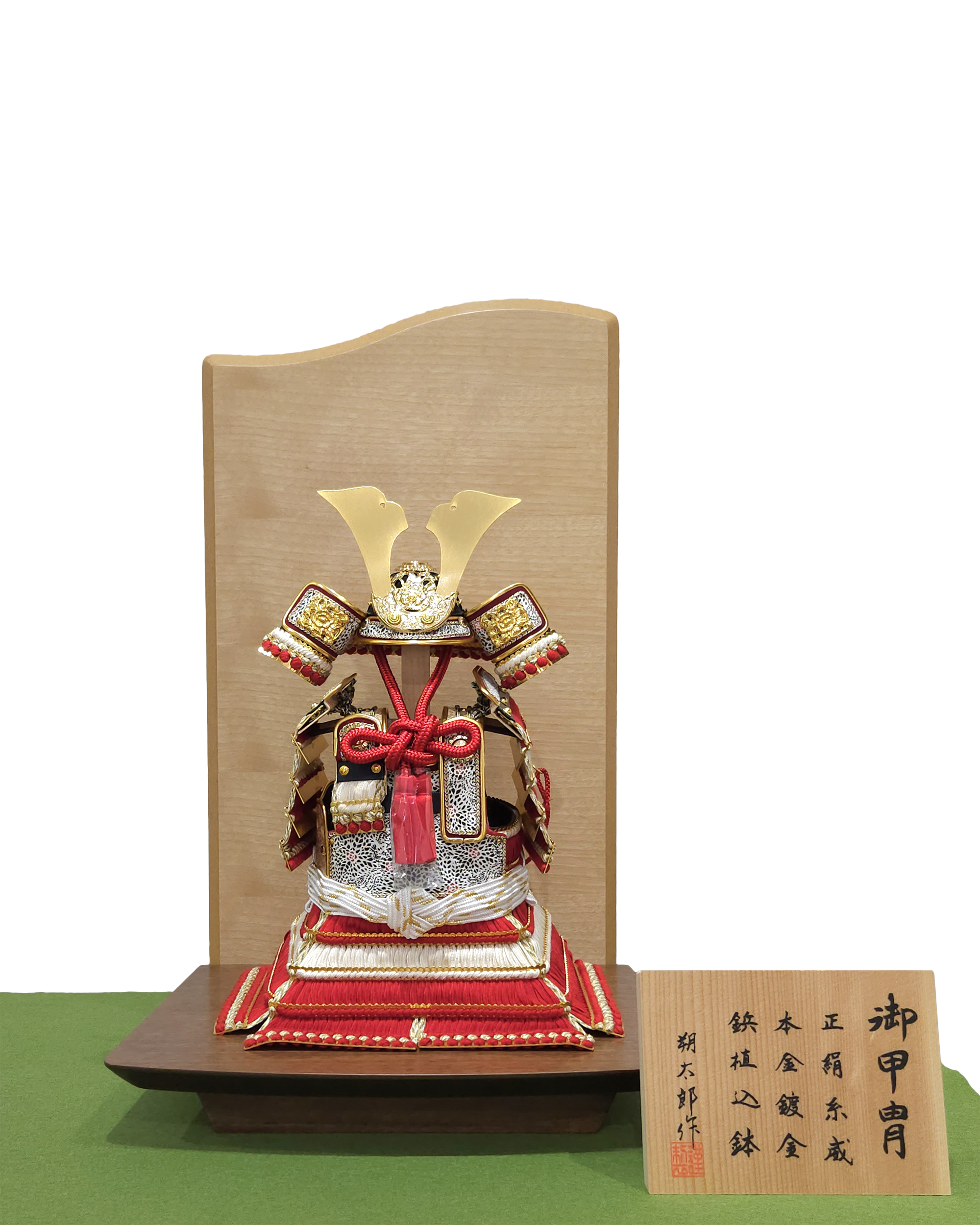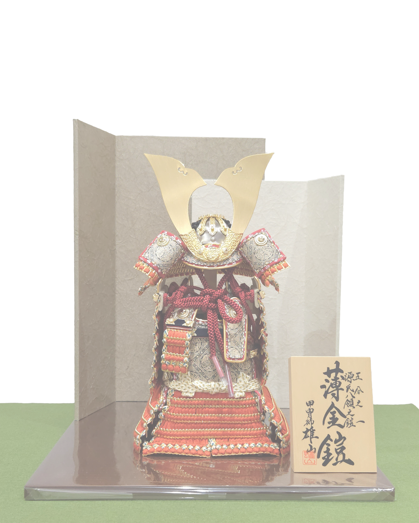 鎧飾り 「赤中白奉納鎧」 (衝立屏風・台飾り) 幅30cm×奥行23cm×高44cm 「薄金緋色奉納鎧」 (重ね屏風・台飾り) 幅33cm×奥行33cm×高38cm 力石甲人「長鍬形紺色奉納鎧」 (令和逸品飾り) 幅36cm×奥行29cm×高60 cm 鎧~よろい~ 99,000円よりございます。お正月飾り・ひな人形・五月人形を店内多数展示しております。屏風・飾台等、組み合わせにより販売価格が変わりますので、お気軽にお問い合わせください。 五月人形に戻る HOME | 五月人形_鎧飾り