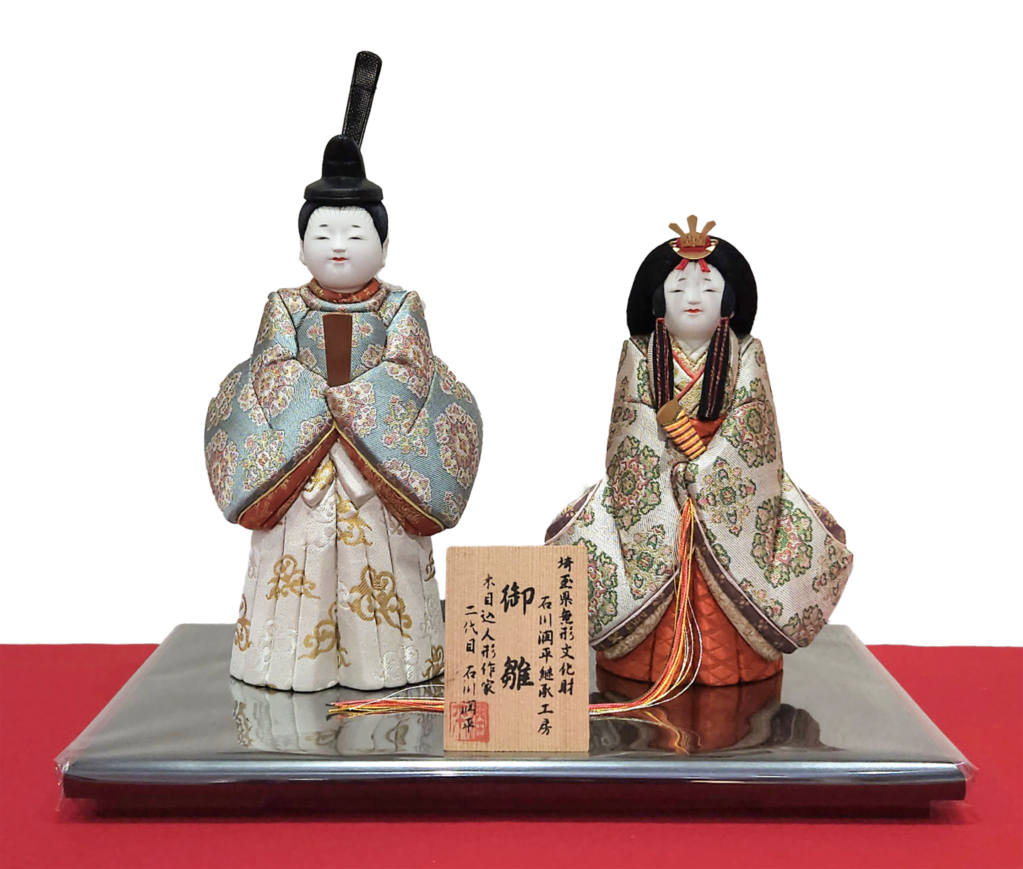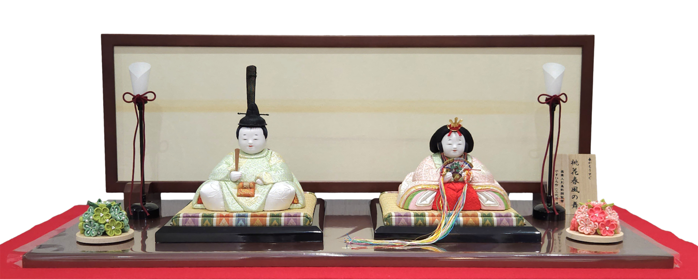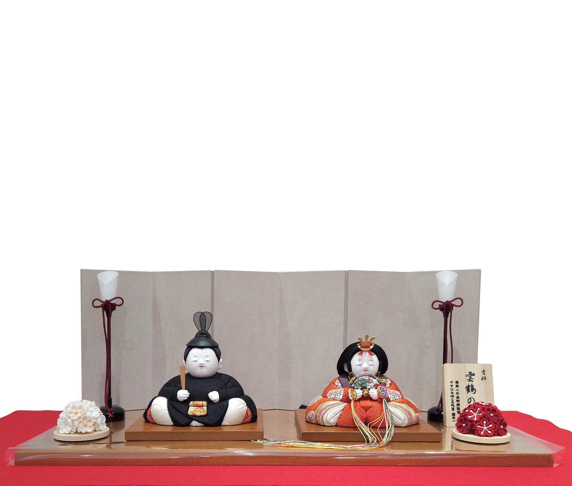 木目込み人形 二代目 石川潤平「円香」 (箱和飾り) 幅45cm×奥行24cm×高15cm 石川佳正「御所雅草子」 (令和逸品飾り) 幅48cm×奥行22cm×高18cm 石川泰大「春風の舞」 (衝立屏風・台飾り) 幅60cm×奥行30cm×高23 cm 石川泰大「雲鶴の舞」 (屏風・台飾り) 幅50cm×奥行25cm×高20 cm 二代目 石川潤平 「有織令和の立雛」 幅30cm×奥行21cm×高27 cm 磊「春がそこまで」 (令和逸品飾り) 幅50cm×奥行25cm×高15 cm 木目込みひな人形 39,600円よりございます。お正月飾り・ひな人形・五月人形を店内多数展示しております。屏風・飾台等、組み合わせにより販売価格が変わりますので、お気軽にお問い合わせください。 雛人形に戻る HOME | ひな人形_木目込み人形