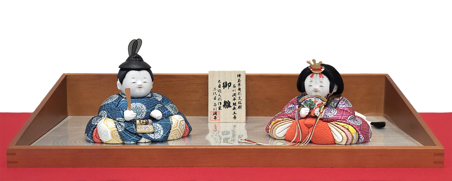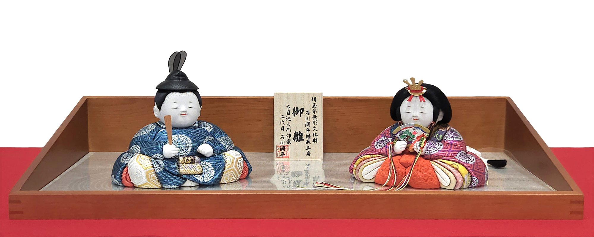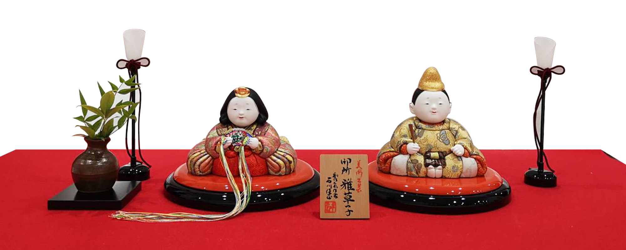 木目込み人形 二代目 石川潤平「円香」 (箱和飾り) 幅45cm×奥行24cm×高15cm 石川佳正「御所雅草子」 (令和逸品飾り) 幅48cm×奥行22cm×高18cm 石川泰大「春風の舞」 (衝立屏風・台飾り) 幅60cm×奥行30cm×高23 cm 石川泰大「雲鶴の舞」 (屏風・台飾り) 幅50cm×奥行25cm×高20 cm 二代目 石川潤平 「有織令和の立雛」 幅30cm×奥行21cm×高27 cm 磊「春がそこまで」 (令和逸品飾り) 幅50cm×奥行25cm×高15 cm 木目込みひな人形 39,600円よりございます。お正月飾り・ひな人形・五月人形を店内多数展示しております。屏風・飾台等、組み合わせにより販売価格が変わりますので、お気軽にお問い合わせください。 雛人形に戻る HOME | ひな人形_木目込み人形
