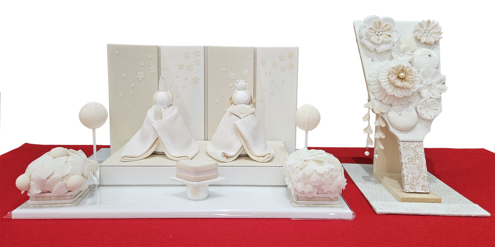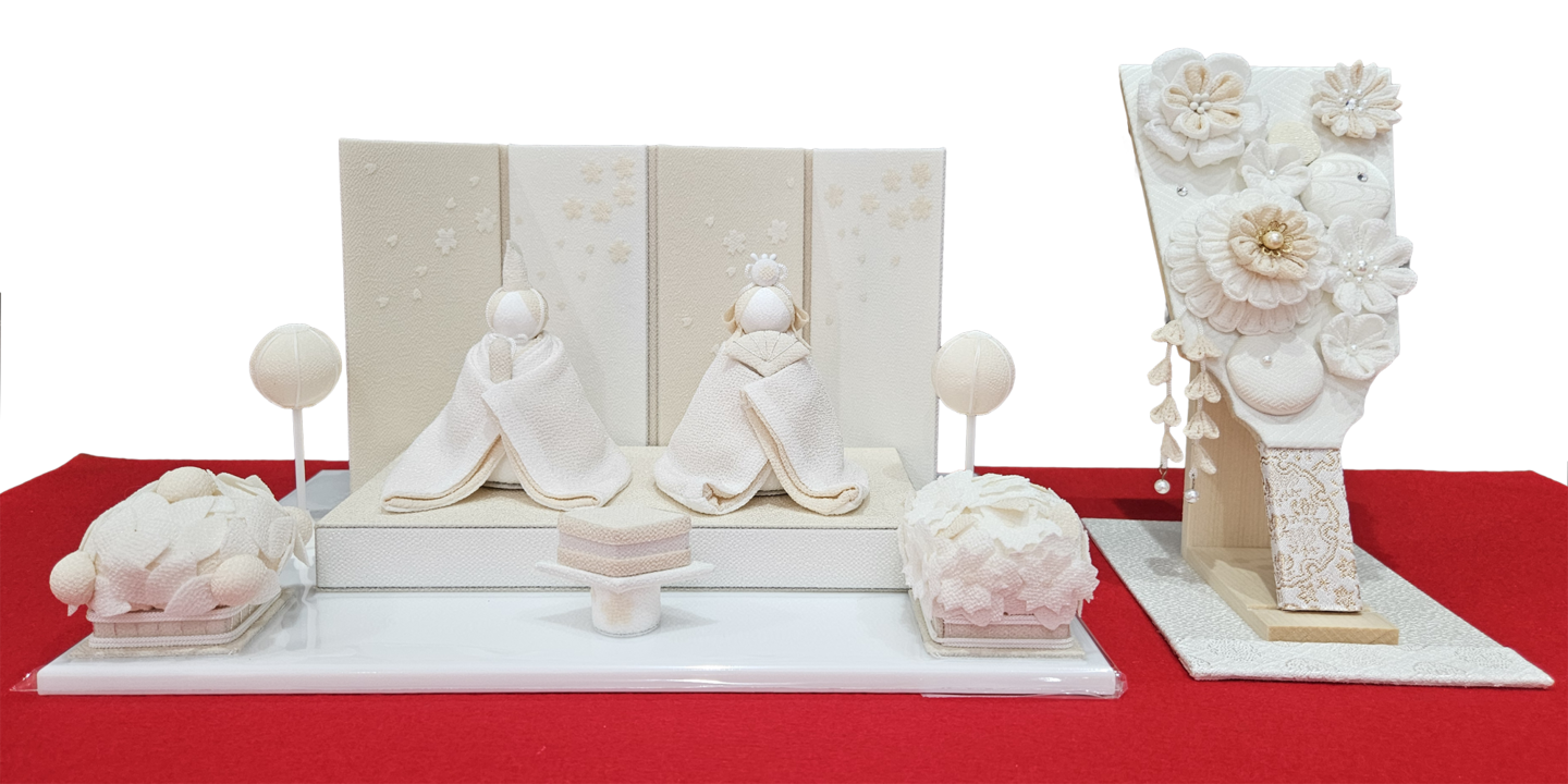 創作ひな飾り 「麗華」 (ちりめん雛飾り) 幅44cm×奥行28cm×高20cm 税込価格 96,800円 「弥生」 (ちりめん雛・羽子板飾り) 幅40cm×奥行20cm×高20cm 税込価格 77,000円 「なぎ」 (天然木ひな飾り) 幅35cm×奥行5cm×高13 cm 税込価格 33,000円 創作ひな飾り 33,000円よりございます。お正月飾り・ひな人形・五月人形を店内多数展示しております。屏風・飾台等、組み合わせにより販売価格が変わりますので、お気軽にお問い合わせください。 雛人形に戻る HOME | ひな人形_創作ひな人形